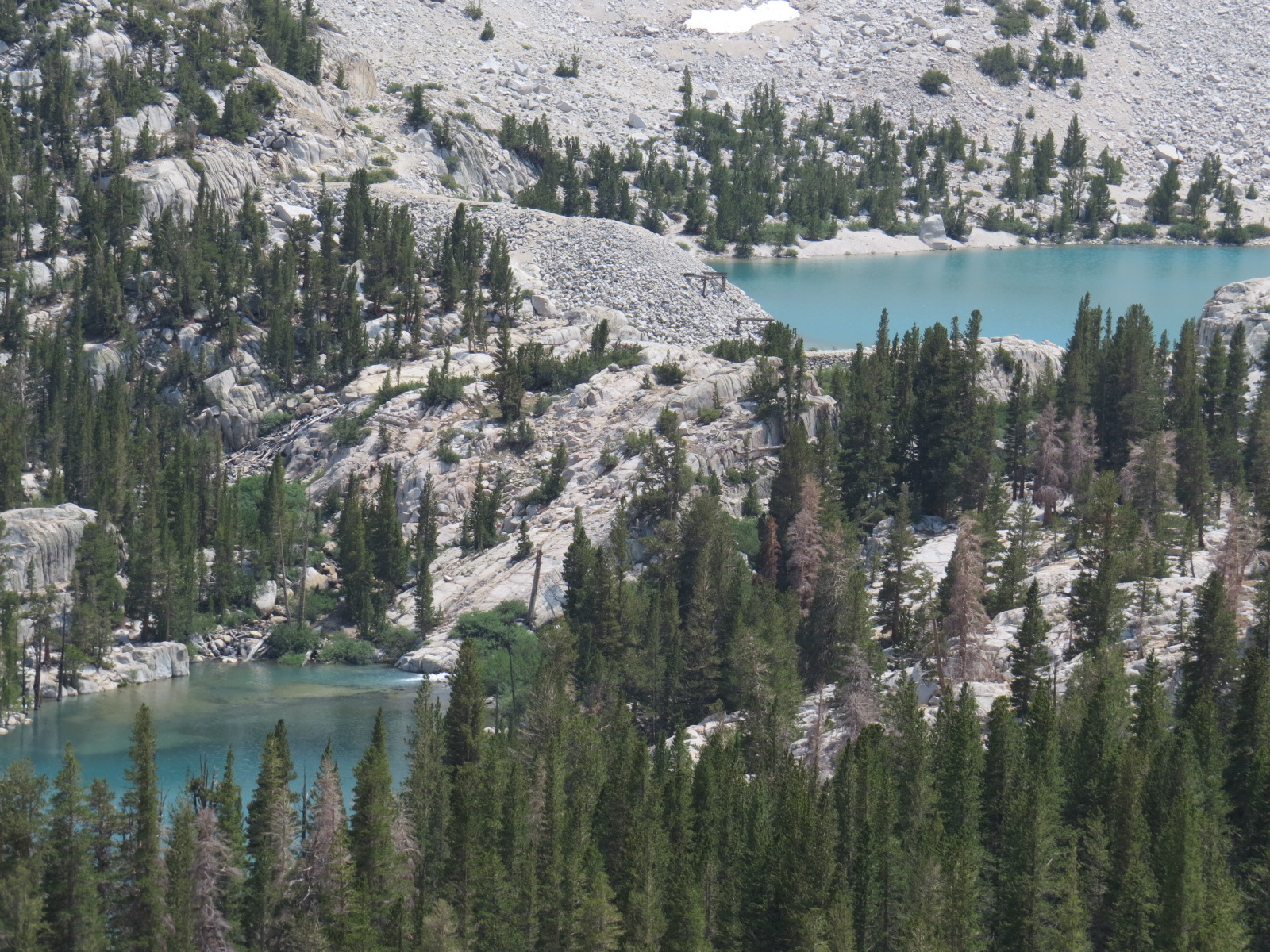 The Palisade Glacier is the only ancient piece of ice south of the Cascade Mountains. It drains down into a chain of alpine lakes so numerous they are not even named.
