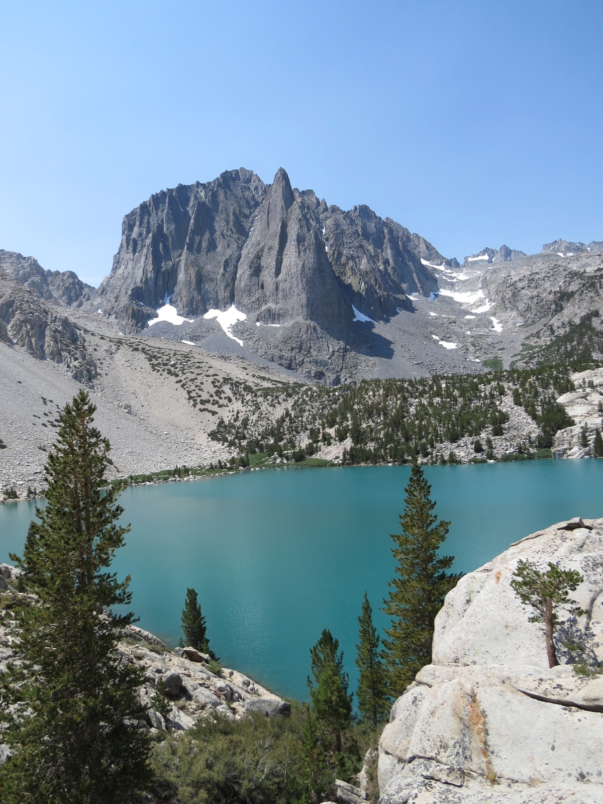 We chose the Big Pine Creek North Fork Trail because of the promise of many spectacular things: two waterfalls, six alpine lakes, four lakes with the aquamarine color caused by glacial melt, summer flowers, sweeping views, and a historic cabin.