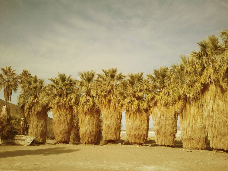 Zyzzyx Spring, Mojave National Preserve, CA. It’s fall here in Los Angeles, and that means one thing. We can once again head to the desert without imminent risk of death.  Sure, people go to the Southern California desert in summer. We flock to Burning Man and Coachella by the hundreds of thousands. But for both of those festivals, the driving sunlight, desert dirt, and actual danger to our health and well-being are part of the experience. Those factors compress it, make it more spiritual, debaucherous, or surreal. And while these feelings might be worthy of pursuing on your own, I for one am excited that it’s desert season. Desert craftJust off Hwy 15 between LA and Vegas, on the western edge of the Mojave National Preserve, the Zzyzx Rd sign leads you down a dirt road to the old site of the Zzyzx Mineral Springs and Health Spa. Lake TuendaeThe drive from LA to Vegas is long and boring. We all know the scene from Swingers. “Vegas, baby, Vegas!” Vince Vaughn and Jon Favreau chant enthusiastically as they begin the drive and get amped up for a weekend of gambling and decadence. They’re still chanting as we cut to them after hours in the car, but now it’s a glassy-eyed mumble, Vegas still miles ahead on the desert highway that never seems to end. It’s never as close as you think it is. Sentinel PalmsThe desert is a place to build dreams from ghost flowers and tumbleweed. In the case of Curtis Howe Springer, it was a place to build his empire of quackery and cures. From 1944 to 1974 people flocked to his fake hot springs, heated by a boiler but fed by a real spring, Soda Spring. Blvd of Dreams The desert is a place to sell those dreams. The hopeful guzzled his special cures and life-prolonging “Antedeluvian Tea”, and those reclining in the cross-shaped health spa tubs lapped up his evangelist sermons, blasted from loudspeakers. Field of PalmsThe desert is a place of extremes, blinding heat and searing cold, dirt and sky, heretics and faithful. We see that certain slant of light here in Los Angeles. It means fall, and we head to the desert, with plenty of water and a shade source, to see the crumbling remains of utopia or to build our own.