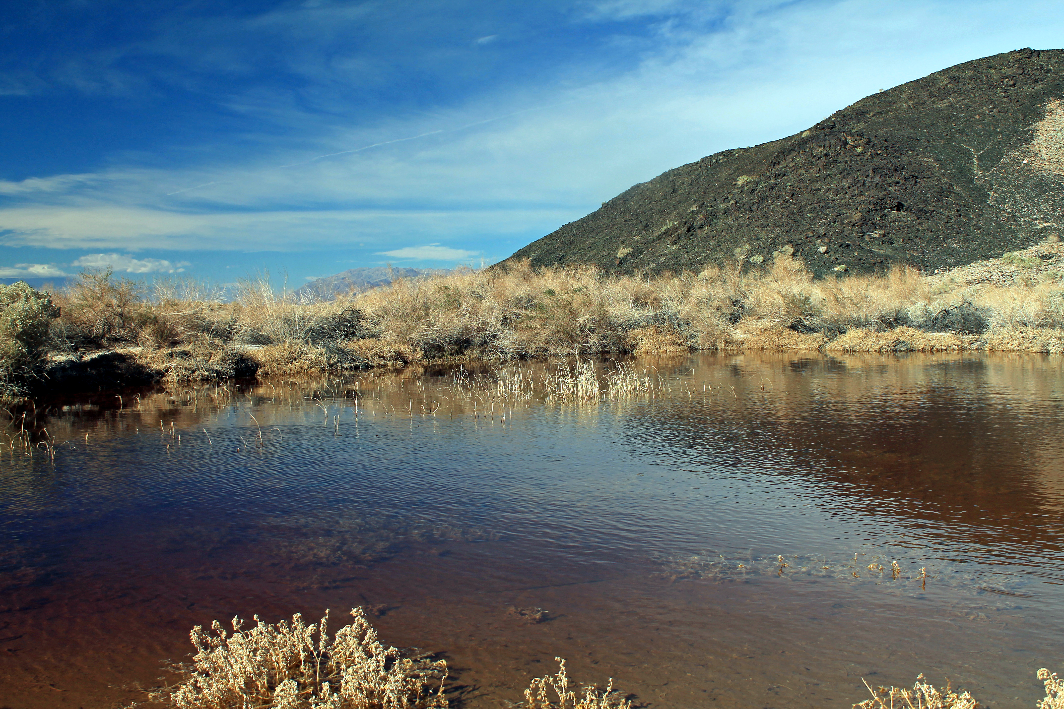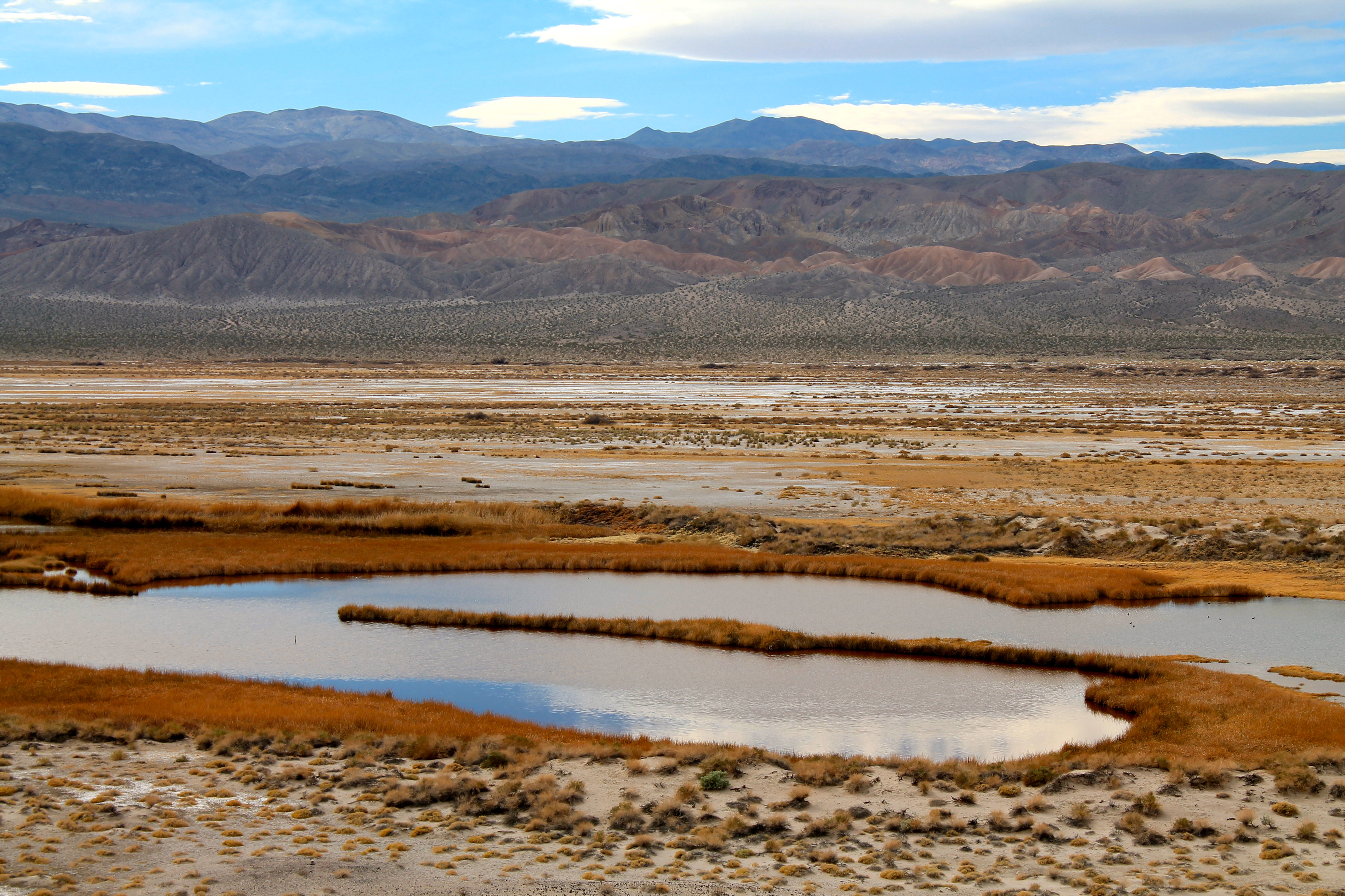 Saratoga Spring, Death Valley, CA. Maybe it’s the water here that spurred all that wishful thinking. Or the lovely view of the Saratoga Spring ponds against austere desert that caused people to flock to this remote southeastern corner of the Black Mountains.