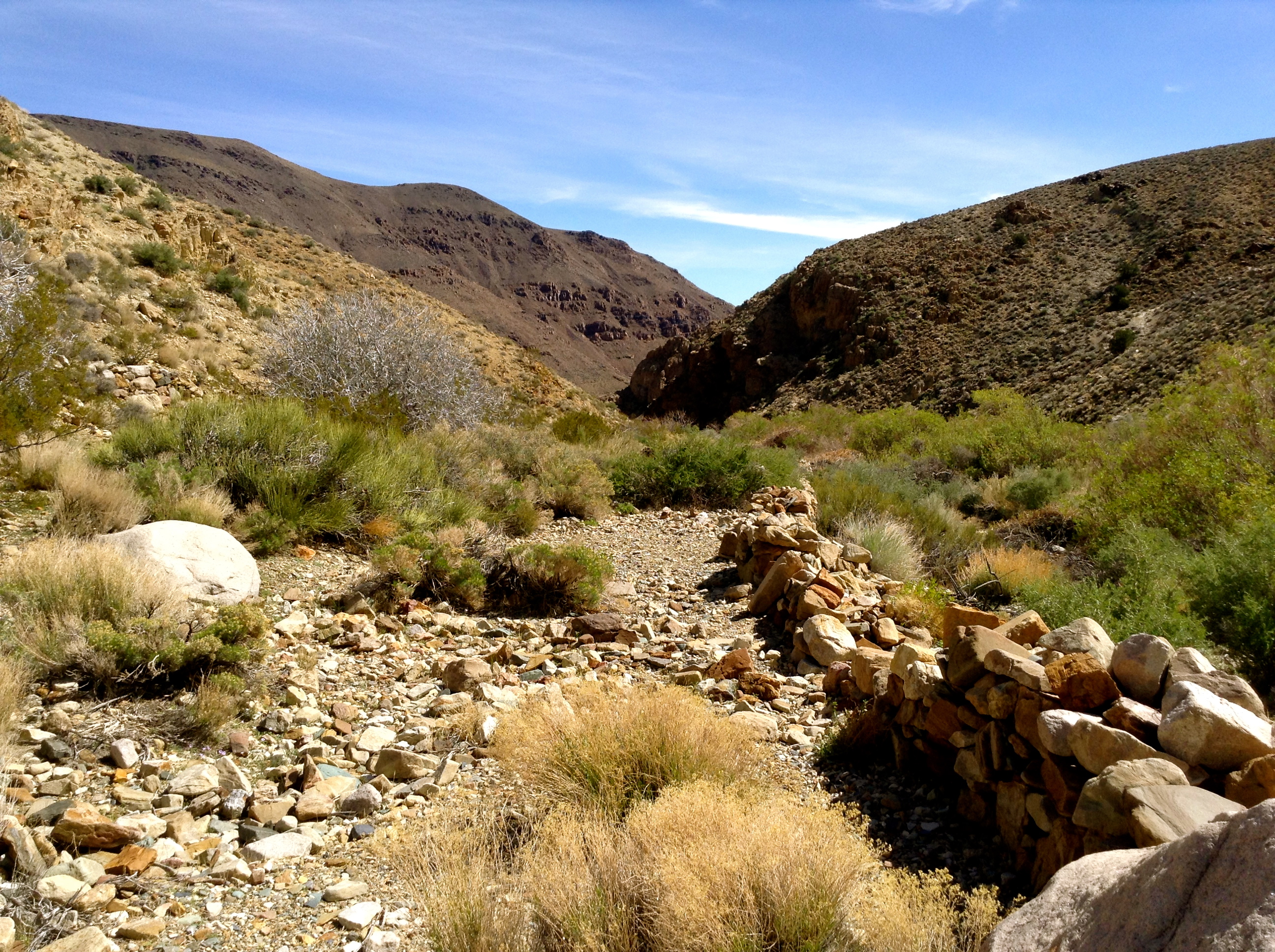There are no big trash heaps here. Instead there are cleared green fields, defunct orchards and low stone walls, works of art, made to last whether by Shoshone Indians or later settlers is unclear. The things that have survived here were meant to survive, and they’re doing pretty well.