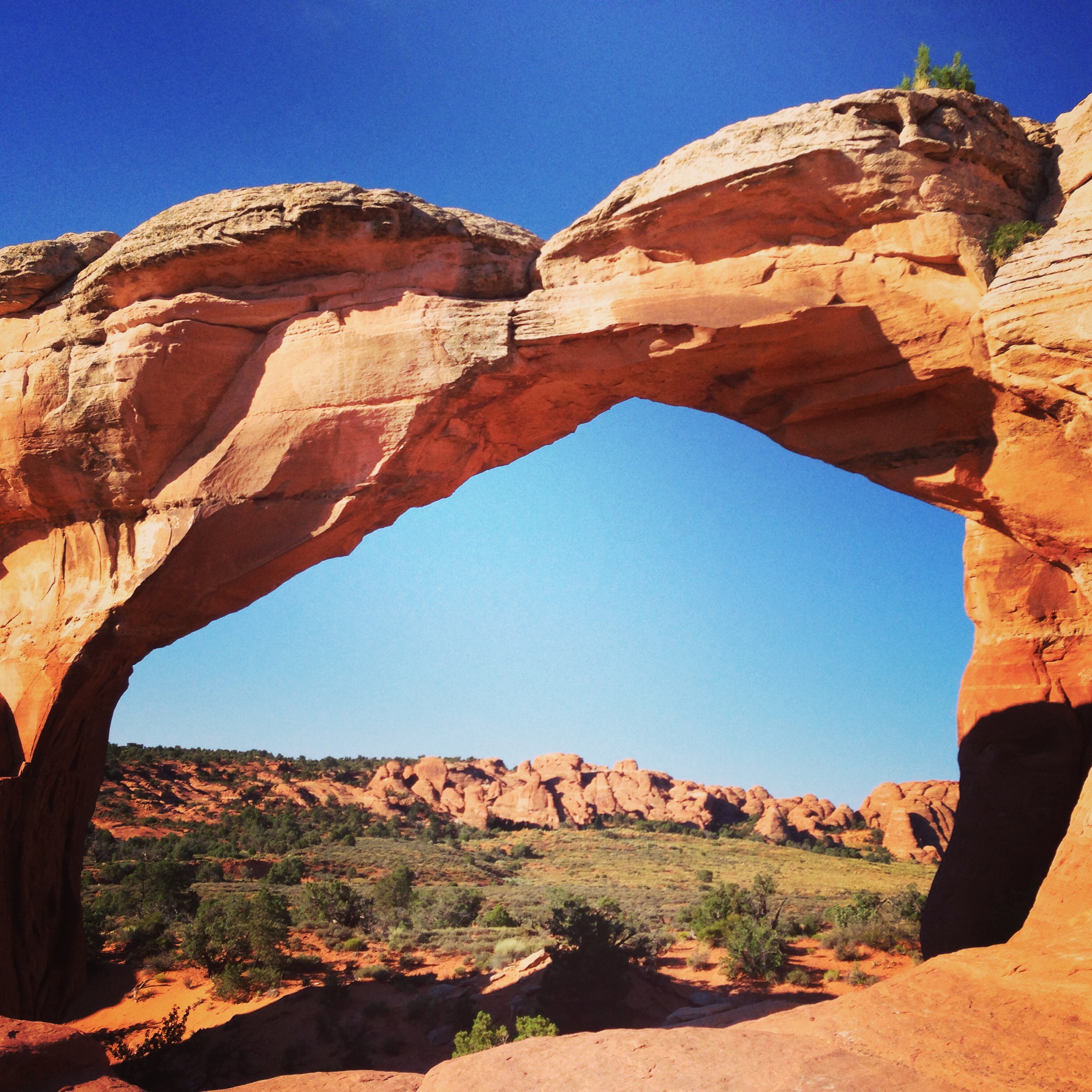 I left my hotel in Moab at sunrise and took my crappy royal blue rental car with no four-wheel drive to see the park pre-rush hour. I felt a little lost without my desert dust-covered SUV jam-packed with camping gear, but I decided that having a bad rental car was all part of the experience, and I had no choice but to go with it.