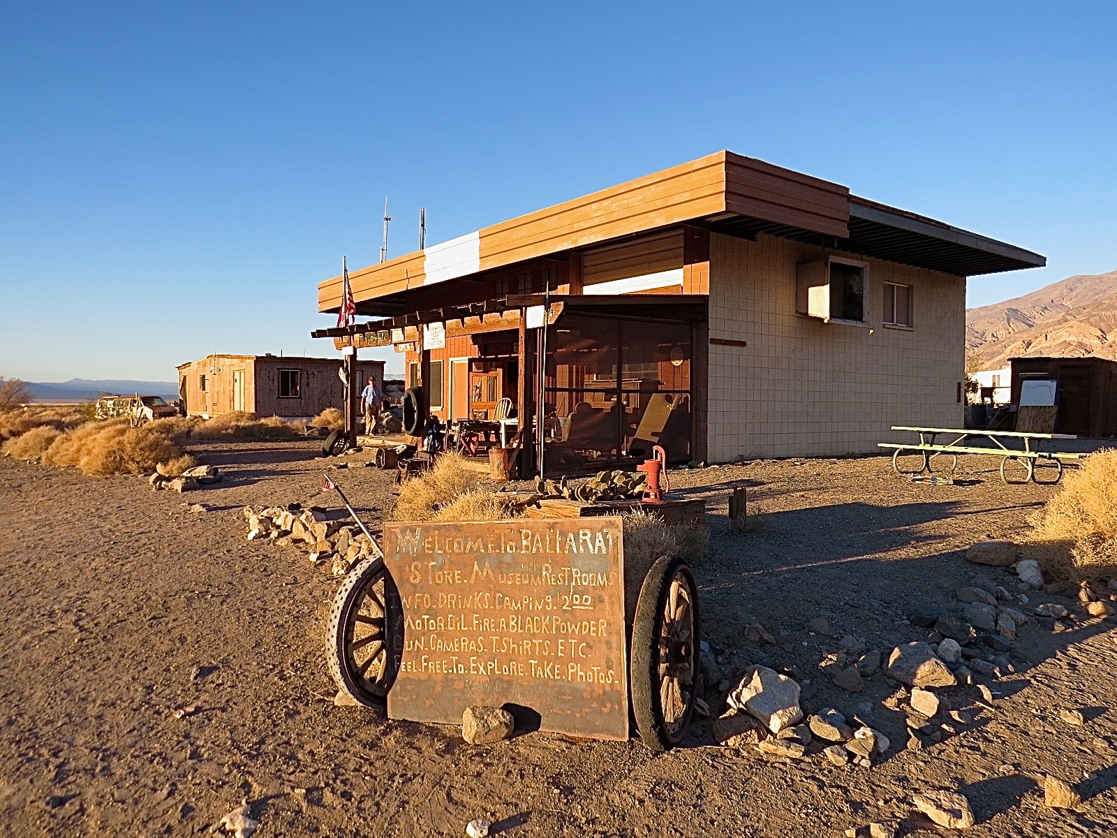 On a blazing hot day at the end of May some friends and I met up at the almost-ghost town of Ballarat to start our backpacking adventure. The town is surreal. It rises from the dusty, mirage-filled Panamint Valley floor in a permanent golden nostalgic glow. It’s unexpected, dwarfed by the mountains. Ballarat was a supply center for silver mines and camps in the early 1900s. Its more dubious claim to fame is hangout for the Manson family in the 1960s. Their ranch was nearby, and their old truck is parked in town. Rocky Novak, the self-appointed caretaker and lifelong resident will be happy to point it out to you. As the only full-time resident, he saves Ballarat from being a full on ghost town. He watches over the historic ruins and keeps an icy cooler for travelers, stocked with beers and sodas, in the old general store. Rocky can give you the history of the area, tell you about road conditions and give insider tips before a hike. Stopping in to say hi is the first step for any trip.