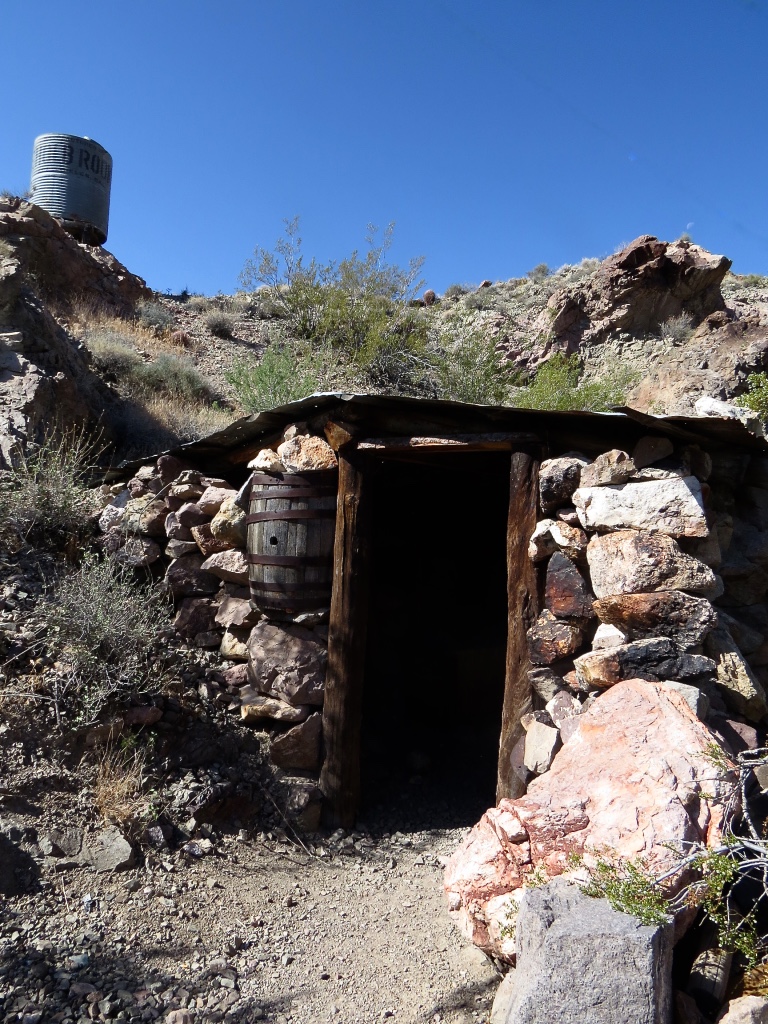 To explore the Techatticup Mine is to explore a parcel of the Wild West without the spectacle of noontime gunfights and bordello fashion. Desert explorers, photographers, adventurers, and curious visitors can wander the seasoned buildings of the private property, and there are also underground mine tours. As it turns out, visitors don’t need saltwater taffy or old timey photo booths (not that there’s anything wrong with either of these things). The effect of the Techatticup Mine is one of “arrested decay” even if it’s clear that some of the elements have been brought here. It’s a repository for desert detritus—signs, bathtubs, cars, dinnerware, old soap—nothing is too mundane. Here it takes on magical properties. Props from old movie sets including a wrecked plane from the 2001 crime movie “3,000 Miles to Graceland” signal that desert history comes in layers. It’s all piled up here like a casserole. As for the other vicious casualties of Eldorado Canyon’s dark history, the Hell Dogs of Eldorado Canyon, l might only recommend you avoid exposed mining shafts at night.